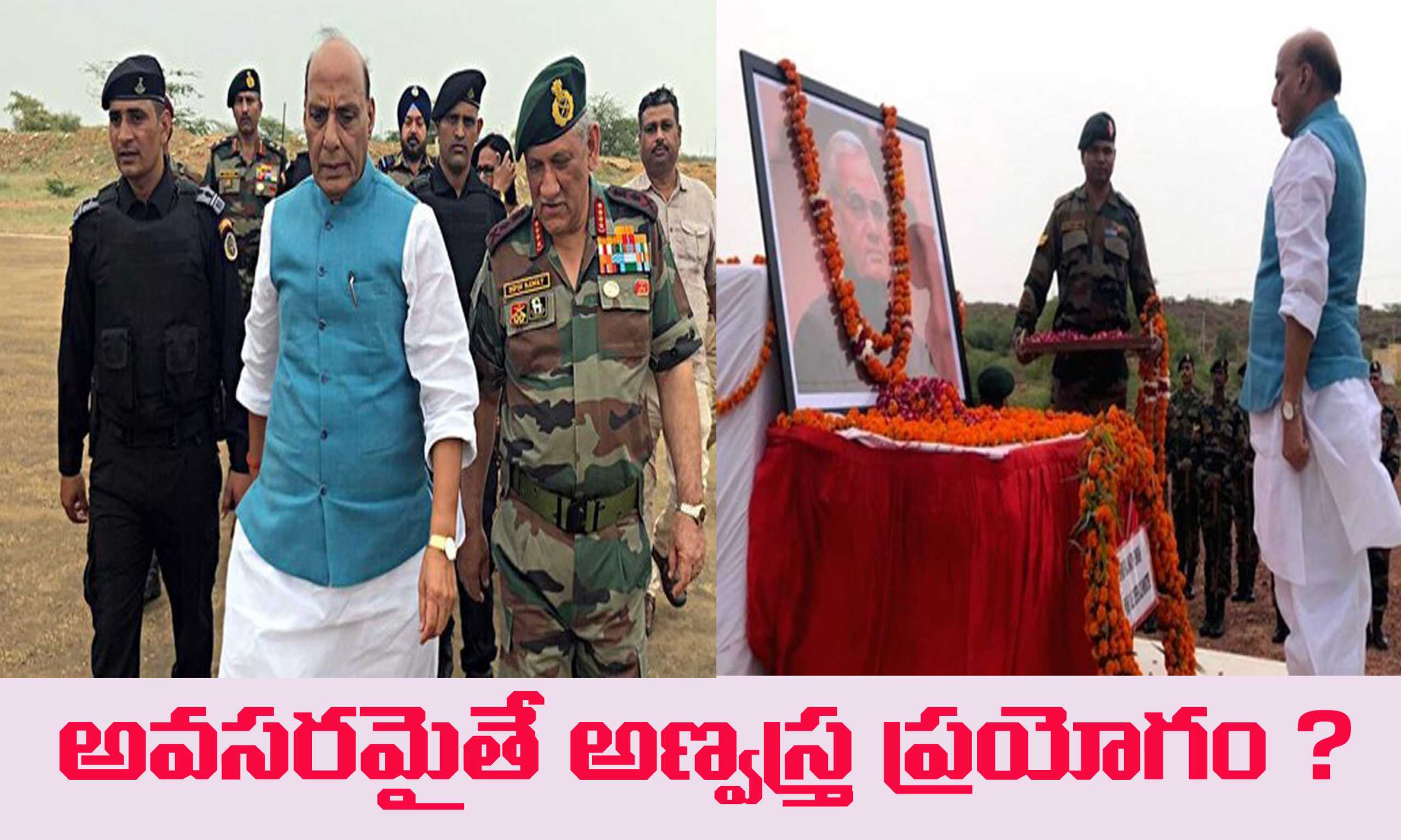 భారత దేశం , పాకిస్తాన్ రెండు అణ్వాయుధ దేశాలే . భారత దేశం అణ్వాయుధాన్ని ముందుగా ప్రయోగించమని ఎప్పుడో చెప్పింది . దీనిని అలుసుగా తీసుకొని పాకిస్తాన్ అణ్వాయుధాన్ని ప్రయోగించి భారత్ లోని ముఖ్య పట్టణాలను భష్మీ పటలం చేస్తామని అప్పుడప్పుడు బెదిరిస్తూ వస్తోంది . ఈ అణ్వాయుధ బలం చూసుకొనే ఇమ్రాన్ ఖాన్ భారత్ పై యుద్ధం చేస్తామని సంచలన ప్రకటన చేశారు . దీనిపై రక్షణ మంత్రి రాజనాథ్ ఘాటుగా స్పందించారు . ఈరోజు అటల్ బిహారీ వాజపేయి ప్రధమ వర్ధంతి సందర్భంగా రాజస్థాన్ లోని ఫోఖ్రాన్ లో ఆయన పాల్గొన్నారు . వాజపేయి ప్రధాన మంత్రిగా వున్నప్పుడు ఫోఖ్రాన్ లో అణు పరీక్షలు జరిగాయి . ఈ సందర్భం రాజనాథ్ మాట్లాడుతూ … అవసరం వస్తే . పరిస్థితులను బట్టి భారత్ దేశం అణ్వాయుధ ప్రయోగం చెయ్య వచ్చునేమో అన్నారు .