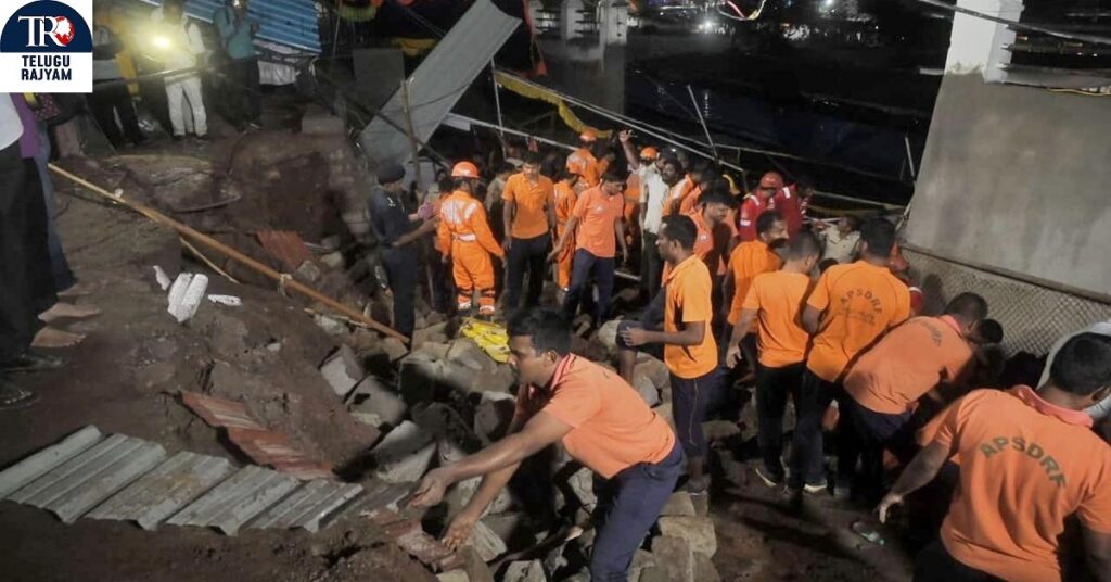 అర్ధరాత్రి కురిసిన భారీ వర్షం కారణంగా గోడ బలహీనమై కూలిన అవకాశం ఉందని అధికారులు భావిస్తున్నారు. 300 రూపాయల ప్రత్యేక దర్శన టికెట్ కౌంటర్ వద్ద షాపింగ్ కాంప్లెక్స్ పక్కన ఉన్న గోడ కూలిపోవడంతో భక్తులు శిథిలాల కింద చిక్కుకుపోయారు. వెంటనే ఎన్డీఆర్‌ఎఫ్‌, ఫైర్‌, రెవెన్యూ సిబ్బంది సహాయక చర్యలు చేపట్టారు.