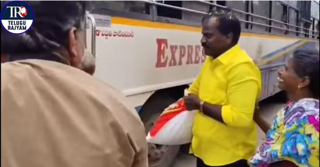 అదే సమయంలో బస్సు ఎక్కేందుకు ప్రయత్నిస్తున్న ఓ మహిళ తన వద్ద ఉన్న బస్తాను బస్సులోకి ఎక్కించలేక ఇబ్బంది పడుతూ, అటుగా వస్తున్న శ్రీనివాసరావును చూసి, “ఏమండీ అబ్బాయి, కొంచెం ఈ బస్తా పడతారా” అంటూ సహాయం కోరారు. ఏమాత్రం ఆలోచించకుండా ఎమ్మెల్యే వెంటనే ఆ బస్తాను భుజాన వేసుకుని బస్సు దగ్గరకు తీసుకెళ్లారు. ఇది గమనించిన కండక్టర్ పరుగున వచ్చి సహాయం చేయబోగా, “పర్లేదులే” అంటూ ఎమ్మెల్యేనే బస్తాను బస్సులోకి అందించారు.