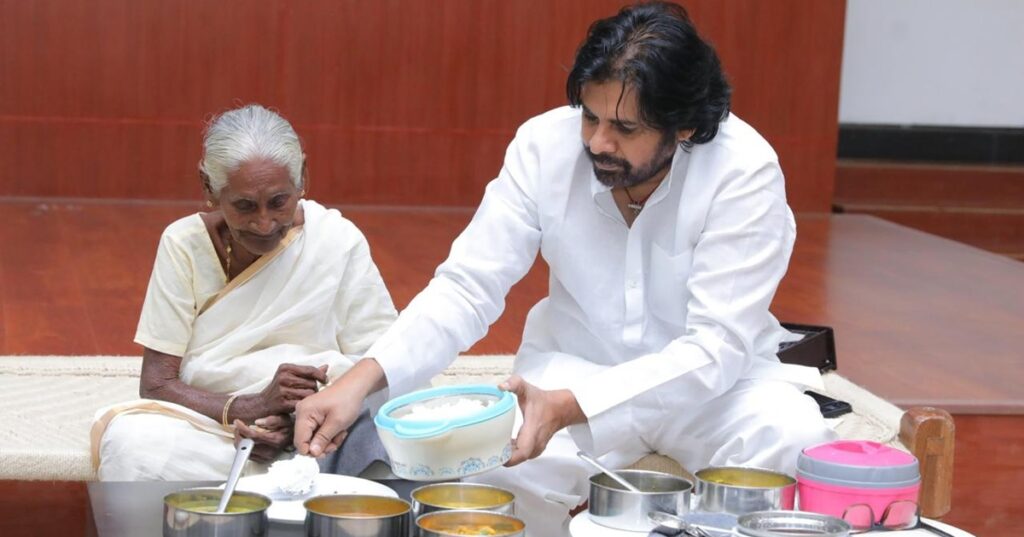 పిఠాపురం నుంచి పోటీ చేసి ఘన విజయం సాధించిన పవన్, తన విజయం వెనుక ఉన్న వెచ్చని గుండెలను గుర్తు పెట్టుకున్నారు. యు.కొత్తపల్లి మండలం కొత్త ఇసుకపల్లికి చెందిన వృద్ధురాలు పేరంటాలు తన వృద్ధాప్య పింఛన్ డబ్బులతో ప్రతి నెల కొంత పొదుపు చేసి, మొత్తంగా రూ.27 వేలు కూడబెట్టి, కులదేవత వేగులమ్మ తల్లికి గరగ చేయించిన విషయం పవన్ దృష్టికి వచ్చింది. ఇది తెలుసుకున్న ఆయన, ఆమెను తన మంగళగిరి క్యాంప్ ఆఫీసుకు ఆహ్వానించి, స్వయంగా విందు అందించారు.