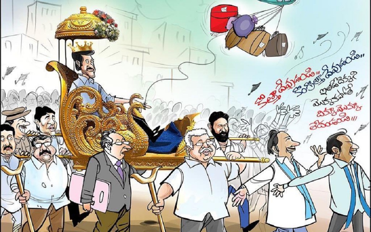 సరే, ఆ కార్టూన్లో ఏం రాశారన్నది వేరే చర్చ. ఇందులో వింతేముంది.? ఎవరు ఔనన్నా ఎవరు కాదన్నా.. ముఖ్యమంత్రి కూర్చున్న పల్లకీని మంత్రులు, అధికారులు మొయ్యాల్సిందే.! రేప్పొద్దున్న కాలం కలిసొచ్చి జనసేన అధినేత పవన్ కళ్యాణ్ ముఖ్యమంత్రి అయినా, అదే జరుగుతుంది.