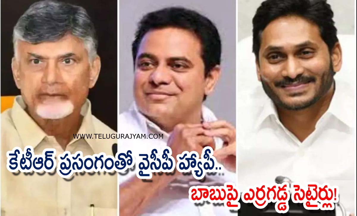 ఆ కథ చెప్పి అప్పటి ముఖ్యమంత్రి పరువు తీశారు కేటీఆర్. అయితే కేటీఆర్, ఆ ముఖ్యమంత్రి పేరు మాత్రం చెప్పలేదు. చెప్పకపోయినా సోషల్ మీడియాలో చంద్రబాబు పేరు మారుమోగిపోతుండటం గమనార్హం. ఇలా వైఎస్సార్ ని గుర్తు చేయడంతోపాటు, చంద్రబాబుపై సెటైర్లు వేయడంతో వైసీపీ శ్రేణులు సంబరపడిపోతున్నాయి.