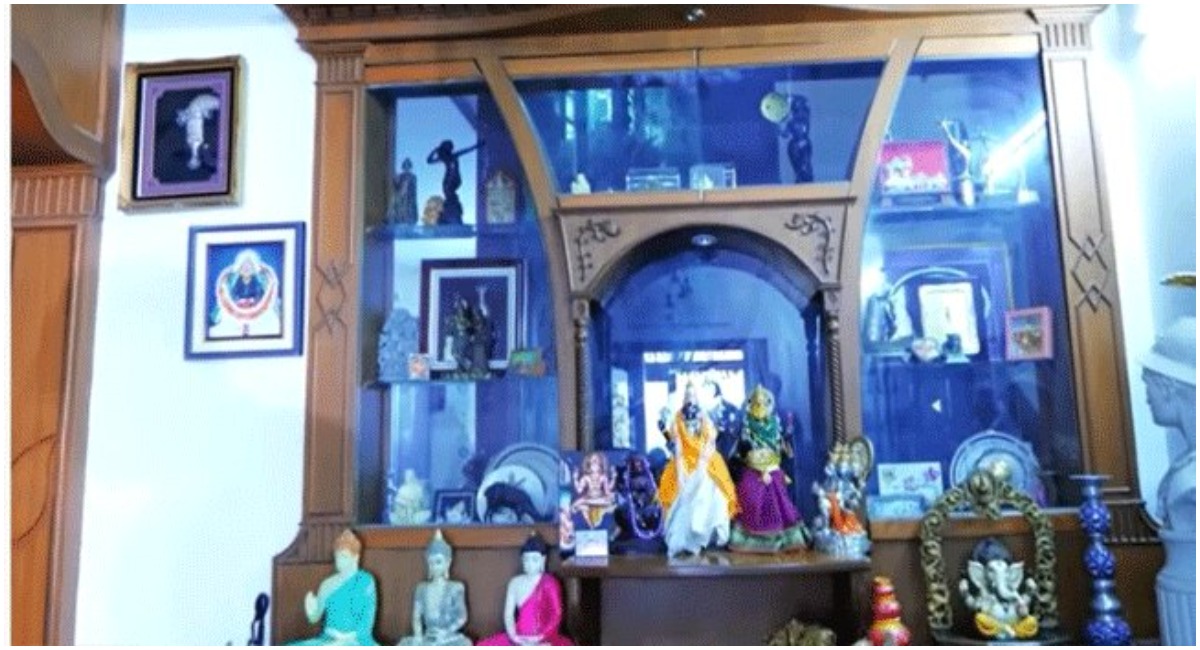 ప్రస్తుతం ప్రభాస్ పెదనాన్న కృష్ణం రాజు ఇంటికి సంబంధించిన ఫోటోలు సోషల్ మీడియాలో వైరల్ గా మారాయి. ఈ సందర్భంగా శ్యామల దేవి తన ఇంటిని చూపెడుతూ ప్రతిదీ వివరించారు.ఇక కృష్ణంరాజు ఇంట్లో అందరికీ దైవభక్తి ఎక్కువ కావడంతో ప్రతి రోజు తప్పనిసరిగా ఇంట్లో పెద్ద ఎత్తున పూజలు చేస్తామని శ్యామలాదేవి చెప్పుకొచ్చారు.అలాగేకృష్ణం రాజు గారికి పురాతన వస్తువులు అంటే ఎంతో ఇష్టం కనుక మా ఇంట్లో ఎక్కువ అలాంటి వస్తువులే కనిపిస్తాయని ఈమె తెలియజేశారు.