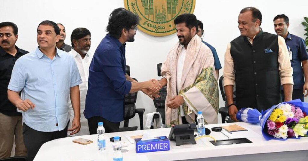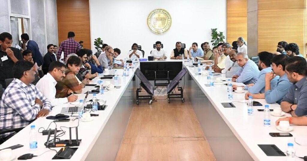 సినీ పరిశ్రమ సమస్యలను ప్రముఖులు మా దృష్టికి తెచ్చారు. అనుమానాలు, అపోహలు, ఆలోచనలు పంచుకున్నారు. మా ప్రభుత్వం ఇండస్ట్రీకి ఎల్లప్పుడూ అండగా ఉంటుంది. సినీ పరిశ్రమను ప్రోత్సహించడమే మా ముఖ్య ఉద్దేశం. 8 సినిమాలకు మా ప్రభుత్వం స్పెషల్ జీవోలు ఇచ్చింది. పుష్ప సినిమాకు పోలీసు గ్రౌండ్ ఇచ్చాం. తెలుగు ఇండస్ట్రీకి ఒక బ్రాండ్ సృష్టించాలనే ఈ నిర్ణయం తీసుకున్నాం. ఐటీ, ఫార్మాతో పాటు మాకు ఈ రంగం కూడా ముఖ్యమే. తెలంగాణలో అవార్డులు ఇవ్వడం లేదని తెలిసి గద్దర్ అవార్డును తీసుకొచ్చాం. ప్రభుత్వానికి, పరిశ్రమకు మధ్యవర్తిగా ఉండాలని దిల్ రాజును ఎఫ్డీసీ ఛైర్మన్గా నియమించాం.