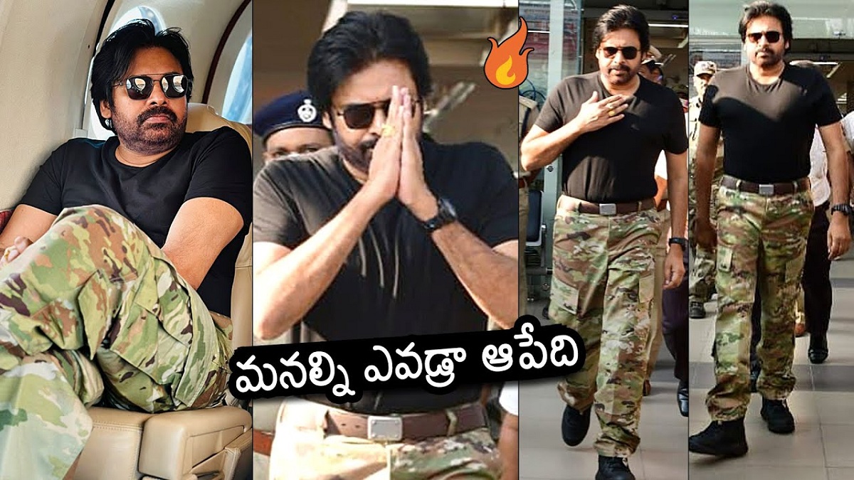 అయితే రాజకీయ పర్యటనలకి వెళ్ళినపుడు పవన్ కళ్యాణ్ కామన్ గా వైట్ అండ్ వైట్ లో ఎక్కువగా వెళ్తూ ఉంటారు. లేదంటే క్యాజువల్ డ్రెస్సింగ్ లో వెళ్తారు. అయితే ఈ సారి మాత్రం డిఫరెంట్ స్టైల్ లో బ్లాక్ కలర్ టీ షర్ట్, ఆర్మీ జవాన్లు వేసుకునే ఫ్యాంట్ ధరించి బ్లాక్ కళ్ళజోడు పెట్టుకొని పవర్ ఫుల్ లుక్ లో దర్శనం ఇచ్చాడు. ఈ లుక్స్ కి సంబందించిన ఫోటోలు, వీడియో ఇప్పుడు సోషల్ మీడియాలో వైరల్ అవుతుంది. పవన్ కళ్యాణ్ రేర్ గా ఇలాంటి కాస్ట్యూమ్స్ ధరిస్తూ ఉంటారు.