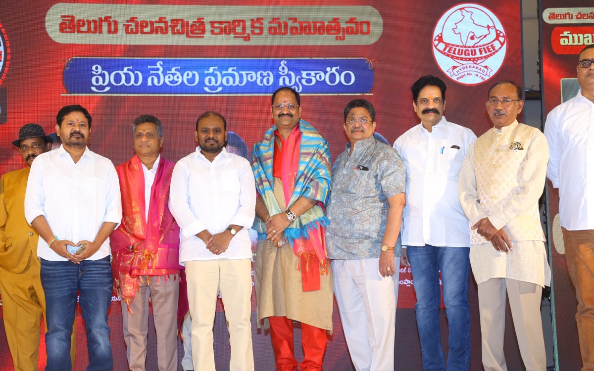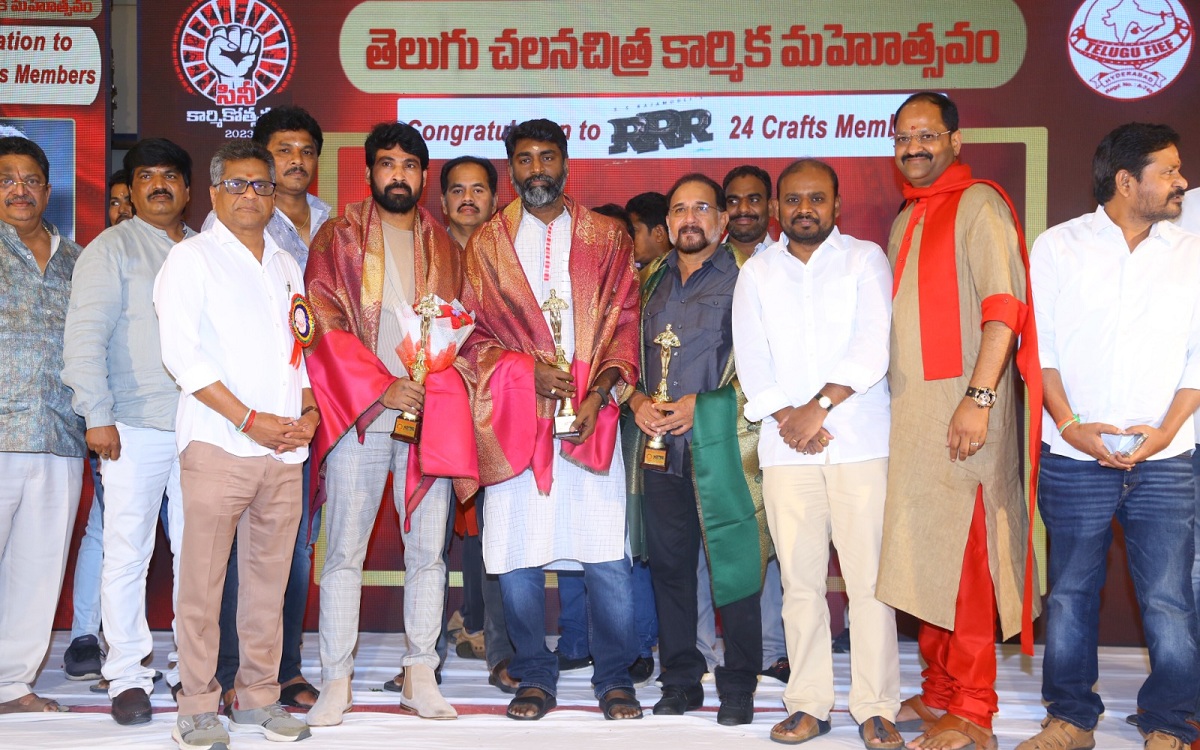 ఈ సందర్భంగా ఫిలిం ఫెడరేషన్ ఆధ్వర్యంలో ఆర్ఆర్ఆర్ చిత్రానికి పనిచేసిన ఇరవై నాలుగు విభాగాల వారికి సన్మానం చేశారు. పాటల రచయిత చంద్రబోస్, సినిమాటోగ్రాఫర్ కె కె సెంథిల్ కుమార్, ఆర్ట్ డైరెక్టర్ సాబూ సిరిస్, స్టంట్ మాస్టర్ కింగ్ సొలమన్ లకు సన్మానం జరిపారు. ఫిలిం ఫెడరేషన్ కు ఇటీవల ఎన్నికైన అధ్యక్షులు అనిల్ కుమార్ వల్లభనేని, సెక్రటరీ పీఎస్ఎన్ దొర, కోశాధికారి వి సురేష్ లు ప్రమాణ స్వీకారం చేశారు. ఇటీవల సినీ కార్మికులకు పెంచిన వేతనాల అగ్రిమెంట్లను ఈ కార్యక్రమంలో ఫెడరేషన్ వారికి ఫిలిం చాంబర్ అందజేసింది. ఇండస్ట్రీలోని 25 వేల మంది సినీ కార్మికుల సంక్షేమానికి ఎల్లవేళలా పాటుపడతామని, తమకు సహకారం అందిస్తున్న సినీ పరిశ్రమ పెద్దలకు కృతజ్ఞతలు తెలిపారు ఫెడరేషన్ అధ్యక్షులు అనిల్ కుమార్ వల్లభనేని. ఎఫ్ డీసీ ఛైర్మన్ అనిల్ కుర్మాచలం మాట్లాడుతూ సినీ పరిశ్రమకు ప్రభుత్వం నిత్యం అండగా నిలబడుతున్నది, కార్మికుల సమస్యల పరిష్కారం కోసం ఎఫ్ డీసీ కార్యాలయం ఎప్పుడూ సిద్ధంగా ఉంటుందని, సినీ కార్మికులు అవసరం ఉన్నప్పుడు తప్పక తన దగ్గరక రావొచ్చని అన్నారు.