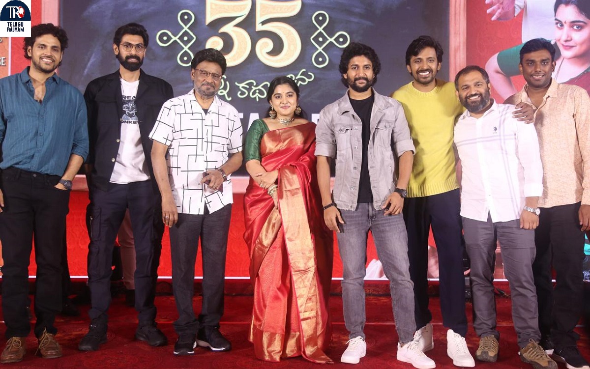 నివేద థామస్, ప్రియదర్శి, విశ్వదేవ్, గౌతమి, భాగ్యరాజ్ లీడ్ రోల్స్ లో నటించిన న్యూ ఏజ్ క్లీన్ ఎంటర్టైనర్.”35-చిన్న కథ కాదు’. సురేష్ ప్రొడక్షన్స్, ఎస్ ఒరిజినల్స్, వాల్టెయిర్ ప్రొడక్షన్స్ బ్యానర్లపై రానా దగ్గుబాటి, సృజన్ యరబోలు, సిద్ధార్థ్ రాళ్లపల్లి నిర్మిస్తున్న ఈ చిత్రానికి నంద కిషోర్ ఈమాని రైటర్ డైరెక్టర్. ఇప్పటికే విడుదలైన ఈ సినిమా ప్రమోషనల్ కంటెంట్ కు చాలా మంచి రెస్పాన్స్ వచ్చింది.”35-చిన్న కథ కాదు”సెప్టెంబర్ 6న తెలుగు, తమిళం, మలయాళ భాషల్లో విడుదల కానుంది. ఈ సందర్భంగా ప్రీరిలీజ్ ఈవెంట్ నిర్వహించారు. నేచురల్ స్టార్ నాని చీఫ్ గెస్ట్ గా హాజరైన ప్రీరిలీజ్ ఈవెంట్ చాలా గ్రాండ్ గా జరిగింది.
