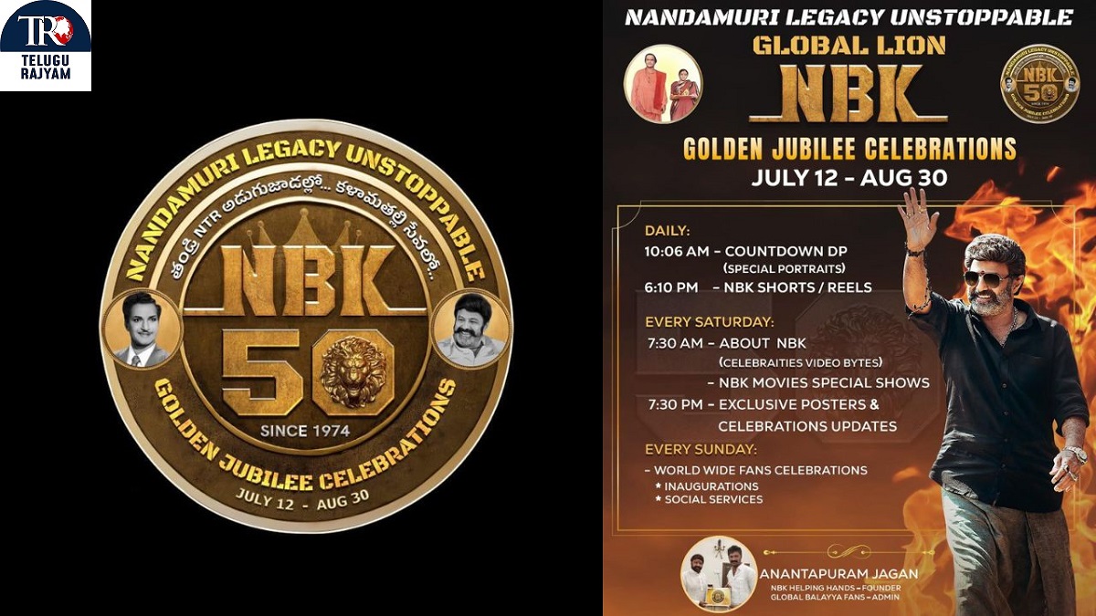తన తండ్రి NTR గారి తర్వాత నేటితరంలో పౌరాణిక, సాంఘిక, జానపద, చారిత్రాత్మక చిత్రాలు చేసి.. అన్ని జనరేషన్స్ ప్రేక్షకులను మెప్పించిన ఒకేఒక్కడు బాలయ్య కావడం మన తెలుగువారందరికి గర్వకారణం. ఈ ప్రతిష్టాత్మక 50 వసంతాల బాలయ్య సినీ స్వర్ణోత్సవ సంబరాలను NBK HELPING HANDS అధ్యక్షులు అనంతపురం జగన్ బాలయ్య అభిమానులను ఒక టీమ్ గా ఏర్పాటుచేసి అత్యంత వైభవంగా 50 రోజుల పాటు పెద్దఎత్తున నిర్వహించాలని సన్నాహాలు చేస్తున్నారు , అలాగే తెలుగు చలనచిత్ర పరిశ్రమ కూడా హైదరాబాద్ లో ఘనంగా వేడుకలు చేయడానికి సిద్ధం చేస్తున్నారు