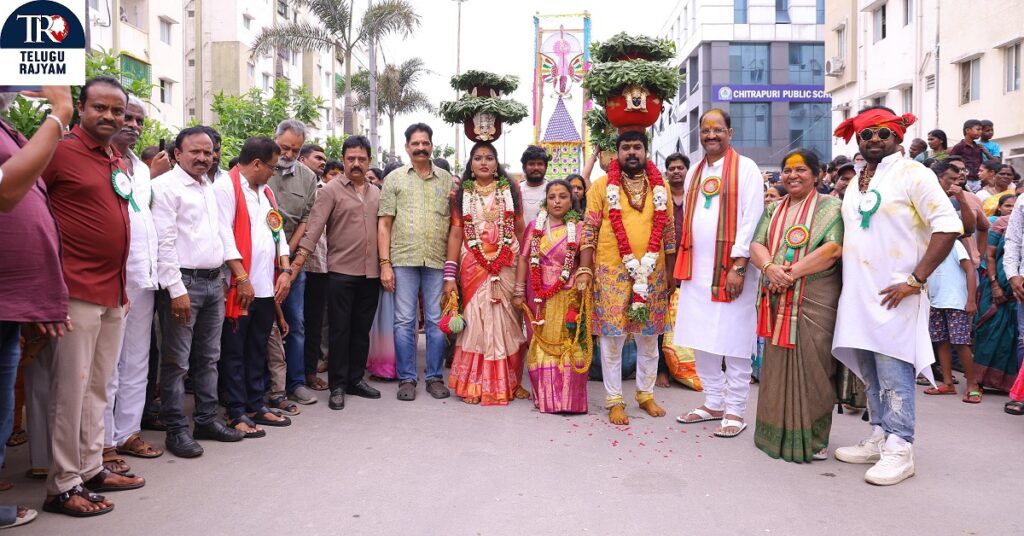 హైదరాబాద్ చిత్రపురి కాలనీలో వల్లభనేని అనిల్ కుమార్ గారి ఆధ్వర్యంలో బోనాలు పండుగ సందర్భంగా శ్రీశ్రీశ్రీ కనకదుర్గ అమ్మవారిని హరిహర వీరమల్లు చిత్ర నటి నిధి అగర్వాల్ దర్శించుకోవడం జరిగింది. ఆ చిత్రం ఘన విజయం సాధించాలని కోరుకుంటూ అమ్మవారి ఆశీస్సులను తీసుకోవడం జరిగింది. ఈ సందర్భంగా ఆర్టిఐ కమిషనర్ దంపతులు సృజన పివి శ్రీనివాస్ గారు ఈ కార్యక్రమానికి హాజరయ్యారు.