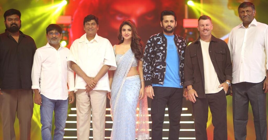 హీరో నితిన్ మాట్లాడుతూ.. అందరికీ నమస్కారం. ఆర్ డైరెక్టర్ రామ్ కుమార్ గారు, ఎడిటర్ కోటి, డిఓపి సాయి శ్రీరామ్ ఈ ముగ్గురు చాలా అద్భుతమైనటువంటి వర్క్ ఇచ్చారు. జీవీ ప్రకాష్ కుమార్ గారు వండర్ఫుల్ మ్యూజిక్ ఇచ్చారు. ఆల్రెడీ సాంగ్స్ పెద్ద హిట్ అయ్యాయి. బీజీఎం అదిరిపోతుంది. సినిమా చూస్తున్నప్పుడు మీరే చెప్తారు. మా సినిమాలో నటించిన అందరి ఆర్టిస్టులకి థాంక్యూ సో మచ్. ఈ సినిమాపై చాలా కాన్ఫిడెంట్ గా ఉన్నాను. మార్చి 28న మీరు చూస్తారు. ఇది నాకు శ్రీలీలకి సెకండ్ మూవీ. ఫస్ట్ సినిమా పెద్దగా ఆడలేదు. ఈ సినిమా డెఫినెట్ గా ఆడుతుంది. మా ఇద్దరికీ హిట్ పెయిర్ అనే పేరు వస్తుంది. ఈ సినిమా అందరూ ఎంజాయ్ చేస్తారు. కేతిక తన ప్రజెన్స్ తో సర్ప్రైజ్ సాంగ్ ని మరో లెవల్ కి తీసుకెళ్ళింది. మా నిర్మాతలు మైత్రి నవీన్ గారు, రవి గారు.. సినిమాకి వాళ్లే రియల్ హీరోస్. వాళ్ళు లేకపోతే మేము లేము. ఇండియాలో మైత్రి ఈరోజు టాప్ ప్రొడక్షన్ హౌస్. సినిమాని చాలా భారీగా తీశారు. దేవుడిచ్చిన తమ్ము వెంకీ. నామీద తనకి ఎంత ప్రేమ ఉందో ఈ సినిమాతో చూపించాడు. మార్చి 28న అది మీరు విట్నెస్ చేస్తారు. క్రికెట్ లెజెండ్ డేవిడ్ వార్నర్ భాయ్ ప్రజెన్స్ తో ఈ సినిమా మరో లెవల్ కి వెళ్ళింది. వార్నర్ క్రికెట్ లో ఎంత ఉత్సాహంగా ఉంటారో సినిమాలో కూడా అంతా ఉత్సాహంగా కనిపిస్తారు. ఇందులో అతని కామియో చిన్నదైనా చాలా ఇంపాక్ట్ ఫుల్ గా ఉంటుంది. సినిమాకి ఒక హై ఇస్తుంది. సినిమా ఖచ్చితంగా మీ అందరినీ అలరిస్తుంది’అన్నారు.