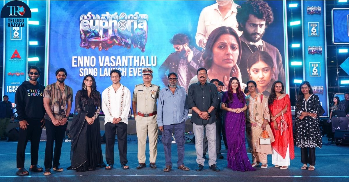 *నీలిమ గుణ మాట్లాడుతూ* .. ‘వైజాగ్లో మా ‘యుఫోరియా’ సాంగ్ను లాంఛ్ చేస్తుండటం ఆనందంగా ఉంది. నోవాటెల్ నుంచి చూస్తే ఇక్కడ వాతావరణం చూస్తుంటే సంద్రంలా అనిపించింది. మా ఈవెంట్కు అనుమతినిచ్చిన సీఎం చంద్రబాబు గారికి, డిప్యూటీ సీఎం పవన్ కళ్యాణ్ గారికి థాంక్స్. గంటా శ్రీనివాసరావు పదేళ్ల క్రితం మా ‘రుద్రమదేవి’కి ఎంతో సపోర్ట్ చేశారు. మళ్లీ ఇక్కడకు మాకోసం ఇలా వచ్చినందుకు ఆయనకు థాంక్స్. ఈ మూవీలో నాకు కమిషనర్ పాత్ర అంటేనే చాలా ఇష్టం. భూమిక గారు ఇప్పటికీ, ఎప్పటికీ ఎవర్ గ్రీన్లా అలానే ఉంటారు. సారా అర్జున్ ‘ధురంధర్’తో నేషనల్ వైడ్గా ట్రెండ్ అయ్యారు. మళ్లీ ఈ చిత్రంతో సారా అర్జున్ అందరినీ ఆకట్టుకుంటారు. ఫిబ్రవరి 6న మా సినిమా రాబోతోంది. అందరూ చూడండి’ అని అన్నారు.