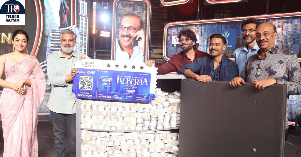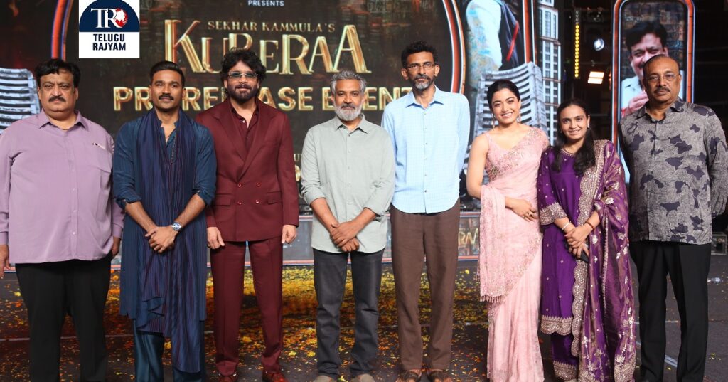 Kuberaa : సూపర్ స్టార్ ధనుష్, కింగ్ నాగార్జున, రష్మిక మందన్న, హైలీ యాంటిసిపేటెడ్ పాన్-ఇండియా మూవీ శేఖర్ కమ్ముల ‘కుబేర’. అద్భుతమైన తారాగణంతో కుబేర ఇండియన్ సినిమాలో గేమ్-ఛేంజర్గా నిలవబోతోంది. ఇప్పటికే విడుదలైన కుబేర ప్రమోషనల్ కంటెంట్ కి ట్రెమండస్ రెస్పాన్స్ వచ్చింది. పోయిరా మామ, ‘ట్రాన్స్ ఆఫ్ కుబేర’, పీపీ డమ్ డమ్ సాంగ్స్ చార్ట్ బస్టర్ రెస్పాన్స్ తో మ్యూజిక్ చార్ట్స్ లో టాప్ ట్రెండింగ్ లో వున్నాయి. శేఖర్ కమ్ముల అమిగోస్ క్రియేషన్స్ ప్రైవేట్ లిమిటెడ్తో కలిసి SVCLLPపై సునీల్ నారంగ్, పుస్కుర్ రామ్ మోహన్ రావు ఈ చిత్రాన్ని హై బడ్జెట్ హై ప్రొడక్షన్ వాల్యూస్ తో నిర్మిస్తున్నారు. కుబేర తెలుగు, తమిళం, హిందీ, కన్నడ, మలయాళ భాషలలో జూన్ 20న ప్రపంచవ్యాప్తంగా గ్రాండ్ గా విడుదల కానుంది. ఈ సందర్భంగా మేకర్స్ ప్రీరిలీజ్ ఈవెంట్ నిర్వహించారు. దర్శక ధీరుడు ఎస్ఎస్ రాజమౌళి చీఫ్ గెస్ట్ గా హాజరైన ఈ వేడుక చాలా గ్రాండ్ గా జరిగింది. ప్రీరిలీజ్ ఈవెంట్ లో రాజమౌళి ‘కుబేర’ ట్రైలర్ ని లాంచ్ చేశారు.