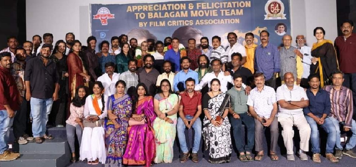 దిల్రాజు ప్రొడక్షన్స్ పై శిరీష్ సమర్పణలో హర్షిత్ రెడ్డి, హన్షిత నిర్మించిన సినిమా ‘బలగం’. ప్రియదర్శి, కావ్యా కళ్యాణ్ రామ్, సుధాకర్ రెడ్డి, మురళీధర్ గౌడ్ ముఖ్యపాత్రలు పోషించారు. వేణు ఎల్దండి దర్శకత్వం వహించారు. మార్చి 3న విడుదలైన ఈ సినిమా ప్రేక్షకులను ఆకట్టుకుంటూ విజయవంతంగా ప్రదర్శితమౌతున్న ‘బలగం’ చిత్రానికి ఫిలిం క్రిటిక్స్ అసోసియేషన్ సత్కార కార్యక్రమం ఏర్పాటు చేసింది. హైదరాబాద్లోని ప్రసాద్ల్యాబ్లో జరిగిన ఈ కార్యక్రమానికి సీనియర్ ఫిలిం జర్నలిస్ట్ ప్రభు సభాధ్యక్షులుగా వ్యవహరించారు. ఫిలిం క్రిటిక్స్ కార్యవర్గ సభ్యులు హేమ సుందర్, ఎం.డి.అబ్దుల్, నవీన్ కుమార్, సురేష్ కవిరాయని, అప్పాజీ, చందు రమేష్,ఆర్.డి.ఎస్. ప్రకాష్ వీరిని శ్రీనివాస్ తదితరులు పాల్గొని తమ అభిప్రాయాలను ‘బలగం’ టీమ్ తో పంచుకున్నారు.