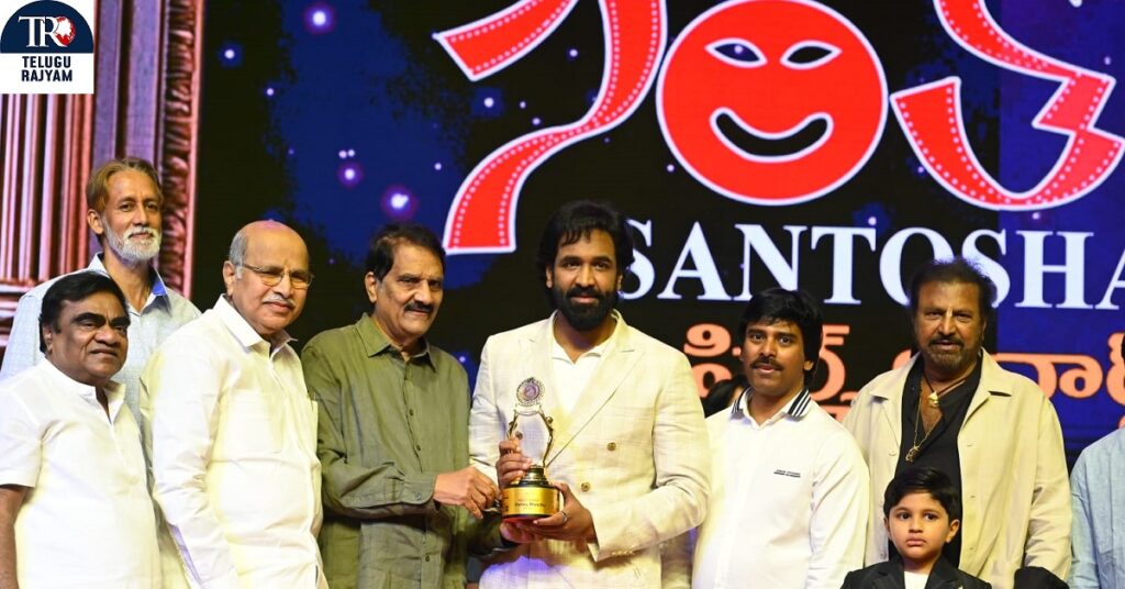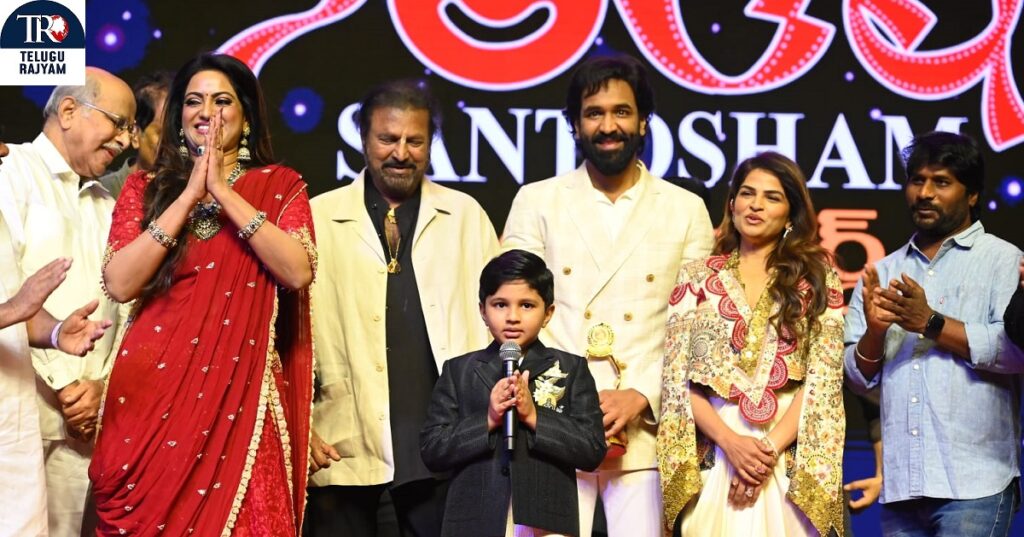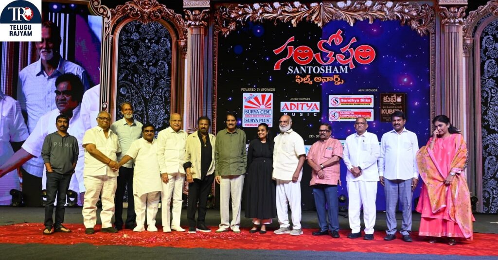 అంగరంగ వైభవంగా జరిగిన 24వ సంతోషం సౌత్ ఇండియన్ అవార్డ్స్ కార్యక్రమం. సినీ పెద్దల మధ్య, సినీ ప్రేమికుల మధ్య ఎంతో ప్రతిష్టాత్మకంగా జరిగిన ఈ కార్యక్రమానికి దర్శకేంద్రుడు రాఘవేంద్రరావు గారు, లెజెండరీ ప్రొడ్యూసర్ అశ్వినీ దత్ గారు, మురళీ మోహన్, ప్రముఖ నిర్మాత కాట్రగడ్డ ప్రసాద్, డా. మోహన్ బాబు మంచు, విష్ణు మంచు, మాలశ్రీ, బాబు మోహన్ గారు, మొదలైన వారు హాజరయ్యారు.