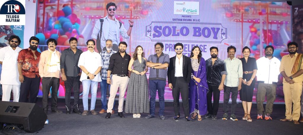 సెవెన్ హిల్స్ ప్రొడక్షన్స్ బ్యానర్ పై శ్రీమతి వినాద్రి, బేబీ నేహా శ్రీ సమర్పణలో సెవెన్ హిల్స్ సతీష్ నిర్మాతగా నవీన్ కుమార్ దర్శకత్వంలో జులై 4వ తేదీన ప్రేక్షకుల ముందుకు రానున్న చిత్రం సోలో బాయ్. బిగ్ బాస్ సీజన్ 7 ఫేమ్ గౌతం కృష్ణ హీరోగా రమ్య పసుపులేటి, శ్వేత అవస్తి హీరోయిన్లుగా నటిస్తూ అనిత చౌదరి, పోసాని కృష్ణ మురళి, అరుణ్ కుమార్, భద్రం, షఫీ, ఆర్కే మామ తదితరులు ఈ చిత్రంలో కీలకపాత్రలు పోషించనున్నారు. త్రిలోక్ సిద్దు ఈ చిత్రానికి సినిమాటోగ్రాఫర్ గా పని చేయగా ప్రవీణ్ పూడి ఎడిటింగ్ చేశారు. జుడా సంధ్య ఈ చిత్రానికి సంగీతాన్ని అందించారు. జూలై 4వ తేదీన ప్రేక్షకుల ముందుకు రానున్న ఈ చిత్ర ప్రీ రిలీజ్ ఈవెంట్ కు వివి వినాయక్ ముఖ్య అతిథిగా హాజరు కాగా రఘు కుంచే, కేఎల్ దామోదర్ ప్రసాద్, ప్రసన్నకుమార్ తదితరులు హాజరై సోలో బాయ్ చిత్ర రిలీజ్ ఈవెంట్ ను గ్రాండ్ సక్సెస్ చేశారు.