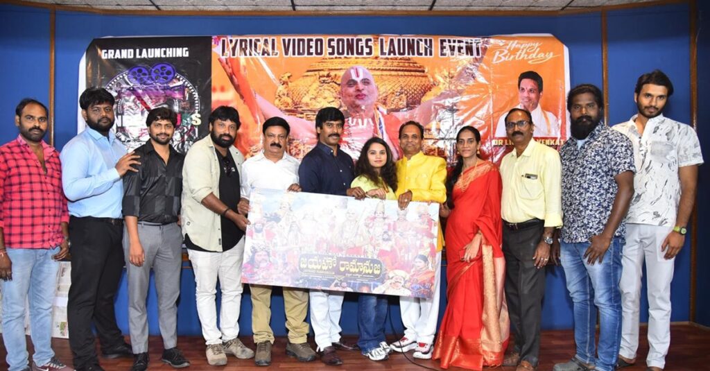 లయన్ డా. సాయి వెంకట్ నటిస్తూ దర్శకత్వం వహిస్తున్న సినిమా “జయహో రామానుజ”. ఈ చిత్రాన్ని సుదర్శనం ప్రొడక్షన్స్ లో సాయిప్రసన్న, ప్రవళ్లిక నిర్మిస్తున్నారు. అమెరికా నటి జో శర్మ హీరోయిన్ గా నటిస్తుండగా..సుమన్, ప్రవళ్లిక ఇతర కీలక పాత్రల్లో కనిపించనున్నారు. ఈ సినిమా త్వరలో తెలుగు, తమిళ, కన్నడ, మలయాళ, హిందీ, సంస్కృత భాషల్లో ప్రేక్షకుల ముందుకు రాబోతోంది. తాజాగా ఈ చిత్ర సాంగ్స్ రిలీజ్ కార్యక్రమాన్ని హైదరాబాద్ లో ఘనంగా నిర్వహించారు. ఈ కార్యక్రమంలో