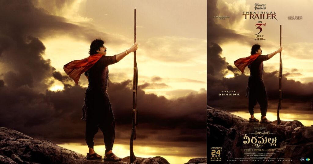 సినీ అభిమానులు ఎంతగానో ఎదురుచూస్తున్న ప్రకటన వచ్చేసింది. భారతీయ సినిమా చరిత్రలో అత్యంత ప్రతిష్టాత్మకమైన చిత్రాలలో ఒకటైన ‘హరి హర వీరమల్లు’ ట్రైలర్ ను జూలై 3వ తేదీన విడుదల చేయనున్నట్లు నిర్మాతలు ప్రకటించారు.