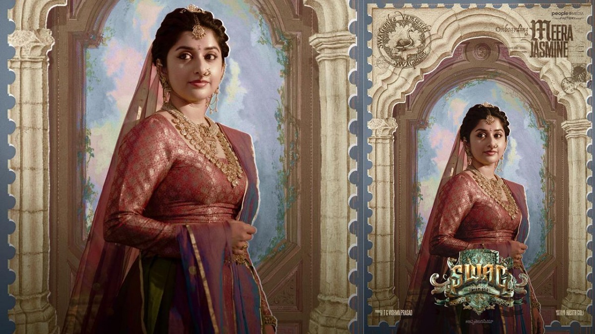 క్యారెక్టర్ ఇంట్రడక్షన్ పోస్టర్లో మీరా జాస్మిన్ హెవీ జ్యువెలరీ డిజైనర్ వేర్లో రాణిలా కనిపిస్తుంది. ఆమె క్యారెక్టర్ కు ఇది పెర్ఫెక్ట్ లుక్. కొంత బ్రేక్ తీసుకున్న మీరా జాస్మిన్ చాలా కాలం తర్వాత ఈ సినిమాలో కీలక పాత్రలో కనిపించనుంది.