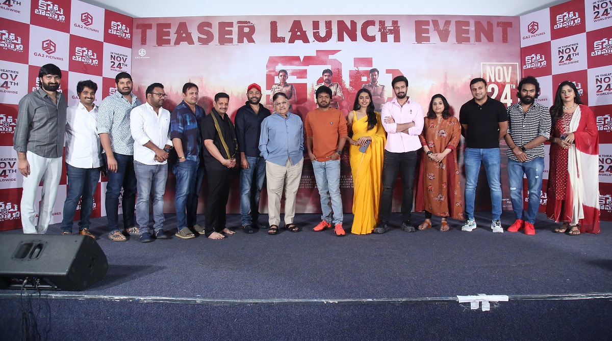 రాహుల్ విజయ్, శివాని రాజశేఖర్ లీడ్ రోల్స్లో శ్రీకాంత్, వరలక్ష్మీ శరత్ కుమార్ కీలకపాత్రలు పోషిస్తున్న చిత్రం ‘కోట బొమ్మాళి పీఎస్’. ‘అర్జున ఫల్గుణ’ ఫేమ్ తేజ మార్ని డైరెక్ట్ చేస్తుండగా.. గీతా ఆర్ట్స్ 2 బ్యానర్పై బన్నీ వాస్, విద్యా కొప్పినీడి నిర్మిస్తున్నారు. ఇప్పటికే ఈ చిత్రం నుంచి విడుదలైన ‘లింగి లింగి లింగిడి’ అనే ఫోక్ సాంగ్కు మంచి రెస్పాన్స్ వచ్చింది. సోమవారం సాయంత్రం ప్రసాద్ ల్యాబ్స్లో టీజర్ లాంచ్ ఈవెంట్ను నిర్వహించారు. బ్లాక్ బస్టర్ డైరెక్టర్ అనిల్ రావిపూడి ఈ చిత్ర టీజర్ను రిలీజ్ చేశారు.
