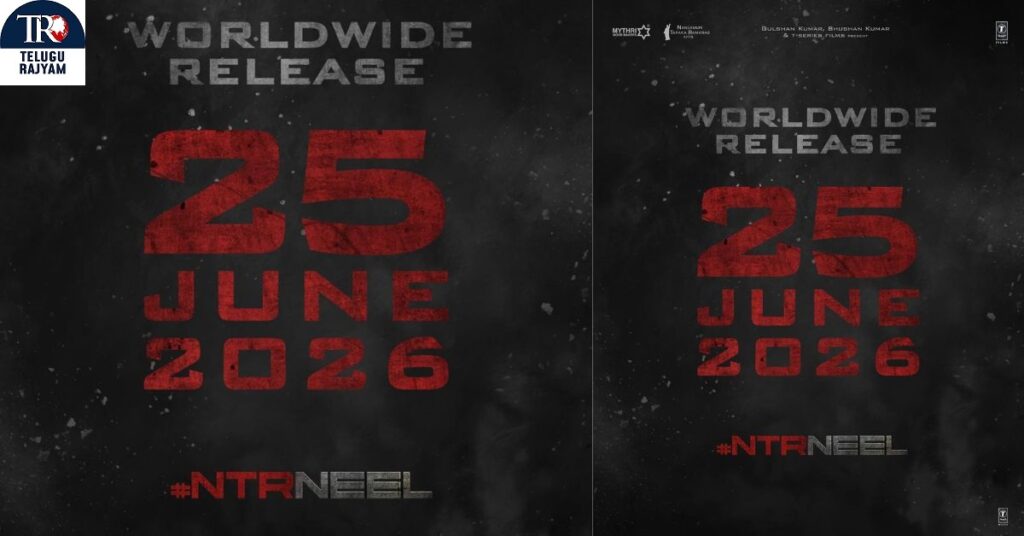 రోజు రోజుకీ క్రేజీ కాంబోలో తెరకెక్కుతోన్న ‘ఎన్టీఆర్నీల్’ మూవీపై అంచనాలు పెరుగుతూ వస్తున్నాయి. అభిమానులు, ప్రేక్షకులు ఈ సినిమాను ఎప్పుడెప్పుడు చూద్దామా అని ఎంతో ఆతృతగా ఎదురు చూస్తున్నారు. ఈ నేపథ్యంలో మేకర్స్ ఎన్టీఆర్ టైటిల్ పాత్రలో ప్రశాంత్ నీల్ దర్శకత్వంలో రూపొందుతోన్న భారీ పాన్ ఇండియా యాక్షన్ చిత్రాన్ని వరల్డ్ వైడ్గా జూన్ 25, 2026లో విడుదల చేస్తున్నట్లు ప్రకటించారు. తెలుగు, తమిళ, హిందీ, కన్నడ, మలయాళ భాషల్లో ప్రపంచ వ్యాప్తంగా సినిమా అందరినీ అలరించనుంది.