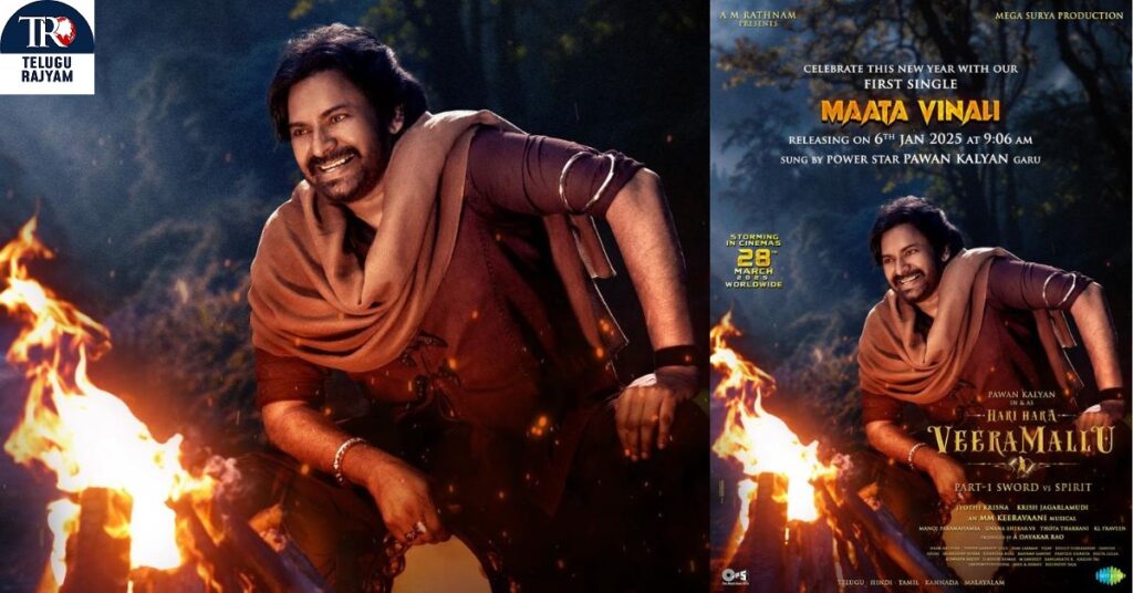 ఆస్కార్ విజేత ఎం.ఎం. కీరవాణి సంగీతం అందిస్తున్న ‘హరి హర వీర మల్లు’ చిత్ర పాటల కోసం ప్రేక్షకులు ఎంతగానో ఎదురుచూస్తున్నారు. నూతన సంవత్సరం సందర్భంగా అభిమానులు, ప్రేక్షకుల్లో ఉత్సాహం నింపే వార్తను తాజాగా నిర్మాతలు పంచుకున్నారు. ‘హరి హర వీర మల్లు’ నుంచి ‘మాట వినాలి’ అంటూ సాగే మొదటి గీతాన్ని జనవరి 6వ తేదీన ఉదయం 9:06 గంటలకు విడుదల చేయనున్నట్లు తెలుపుతూ ప్రత్యేక పోస్టర్ ను వదిలారు. తుఫానుకి ముందు ప్రశాంతతలా, యుద్ధానికి ముందు చిరునవ్వు చిందిస్తూ ప్రశాంతంగా కనిపిస్తున్న యోధుడిలా ఉన్న పవన్ కళ్యాణ్ లుక్ పోస్టర్ లో ఆకట్టుకుంటోంది. పెంచల్ దాస్ సాహిత్యం అందించిన ఈ గీతాన్ని పవర్ స్టార్ పవన్ కళ్యాణ్ స్వయంగా ఆలపించడం విశేషం.