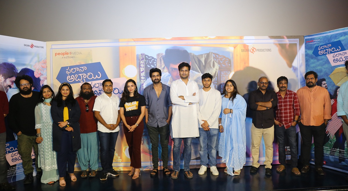 నాగశౌర్య, శ్రీనివాస్ అవసరాల కలయికలో వస్తున్న మూడో సినిమా ఇది. గతంలో వారి కలయికలో వచ్చిన ‘ఊహలు గుసగుసలాడే’, ‘జ్యో అచ్యుతానంద’ సినిమాలు ప్రేక్షకులను విశేషంగా ఆకట్టుకున్నాయి. ఆ చిత్రాలలోని సన్నివేశాలు, సంభాషణలు, సంగీతం కట్టిపడేశాయి. నటుడిగా శ్రీనివాస్ అవసరాల ఎన్నో సినిమాలతో ఆకట్టుకున్నప్పటికీ.. ఆయన రచనకి, దర్శకత్వానికి ఫిదా అయిన ప్రేక్షకులు ఆయన దర్శకత్వంలో మూడో సినిమా కోసం ఎంతగానో ఎదురుచూస్తున్నారు. ఈ క్రమంలో ఆయన ముచ్చటగా మూడోసారి నాగశౌర్యతో కలిసి దర్శకుడిగా వెండితెరపై వెన్నెల వాన కురిపించడానికి సిద్ధమవుతున్నారు. ఇప్పటికే విడుదలైన ‘ఫలానా అబ్బాయి ఫలానా అమ్మాయి’ ఫస్ట్ లుక్ కి ప్రేక్షకుల నుంచి అద్భుతమైన స్పందన లభించింది. గురువారం సాయంత్రం ఈ చిత్ర టీజర్ విడుదలైంది. హైదరాబాద్ లో జరిగిన టీజర్ విడుదల కార్యక్రమంలో కథానాయకుడు నాగశౌర్య, కథానాయిక మాళవిక నాయర్, దర్శకుడు శ్రీనివాస్ అవసరాల తదితరులు పాల్గొన్నారు.