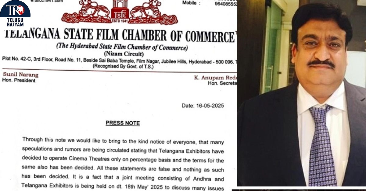 ఈ సందర్భంగా నిర్వహించిన ప్రెస్ మీట్ లో తెలంగాణ స్టేట్ ఫిల్మ్ ఛాంబర్ ఆఫ్ కామర్స్ ప్రెసిడెంట్ సునీల్ నారంగ్ మాట్లాడుతూ.. అందరికీ థాంక్ యూ. తెలంగాణ స్టేట్ ఫిల్మ్ ఛాంబర్ ఆఫ్ కామర్స్ ప్రెసిడెంట్ గా నన్ను ఎన్నుకున్న అందరికీ ధన్యవాదాలు. ఐ విల్ డూ మై బెస్ట్’అన్నారు