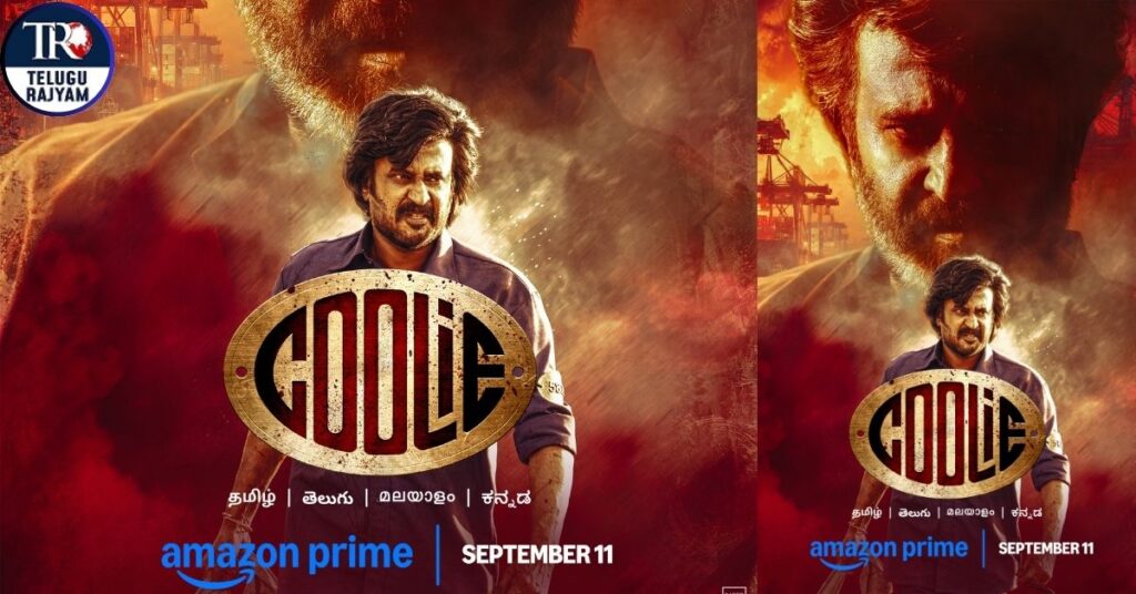 సూపర్ స్టార్ రజనీకాంత్ ప్రధాన పాత్రలో నటించిన ఉత్సాహభరితమైన యాక్షన్ థ్రిల్లర్ కూలి చిత్రము యొక్క ప్రత్యేక ప్రపంచవ్యాప్త ప్రసారాన్ని ప్రకటించింది. లోకేష్ కనగరాజ్ రచించి, దర్శకత్వం వహించిన మరియు అనిరుద్ధ్ స్వరరచన చేసిన ఈ చిత్రములో నాగార్జున, సౌబిన్, ఉపేంద్ర, శృతి హాసన్, సత్యరాజ్, ఆమీర్ ఖాన్, రచిత రామ్, మరియు పూజ హెగ్డే వంటి అగ్ర తారాగణం ముఖ్యపాత్రలలో నటించారు. కూలి సెప్టెంబరు 11 నుండి తమిళములో, భారతదేశము మరియు ప్రపంచవ్యాప్తంగా 240 దేశాలు మరియు భూభాగాలలో ప్రైమ్ వీడియో పై ప్రత్యేకంగా ప్రసారం అవుతుంది, ఇది తెలుగు, మళయాళం మరియు కన్నడ భాషలలోకి డబ్ చేయబడింది.