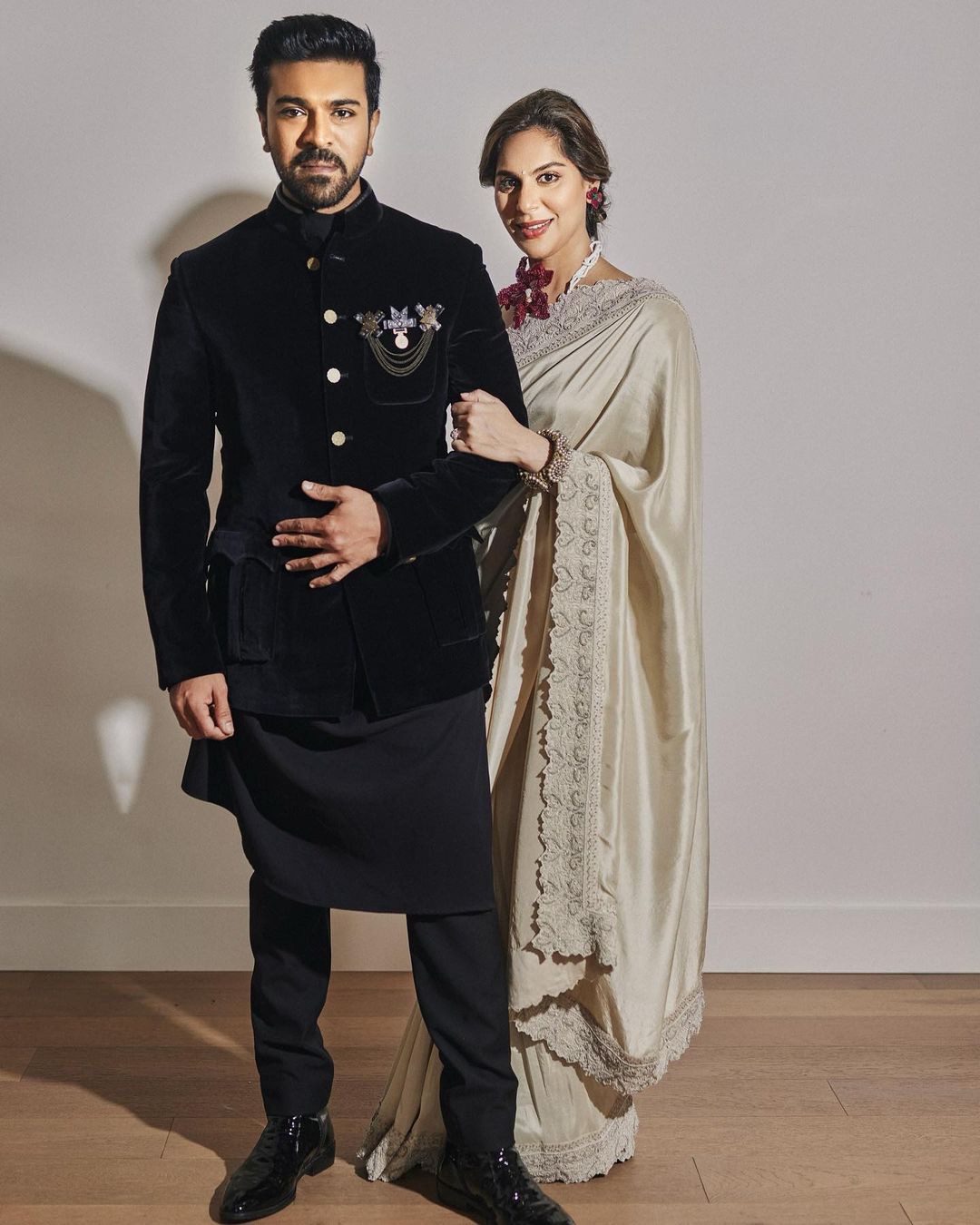 విశ్వవ్యాప్తంగా అందరి దృష్టినీ ఆకట్టుకున్న ఆస్కార్ 2023 వేడుకల్లో రామ్చరణ్, ఉపాసన దంపతుల వస్త్రధారణ మెప్పిస్తోంది. డిజైనర్, కస్టమ్ మేడ్ ఎటైర్లో చూపరుల దృష్టిని ఆకర్షించారు ఈ జంట. అత్యంత ప్రతిభావంతులైన నిపుణుల పనితనాన్ని ప్రదర్శించేలా ఉన్నాయి వారి వస్త్రాలు.