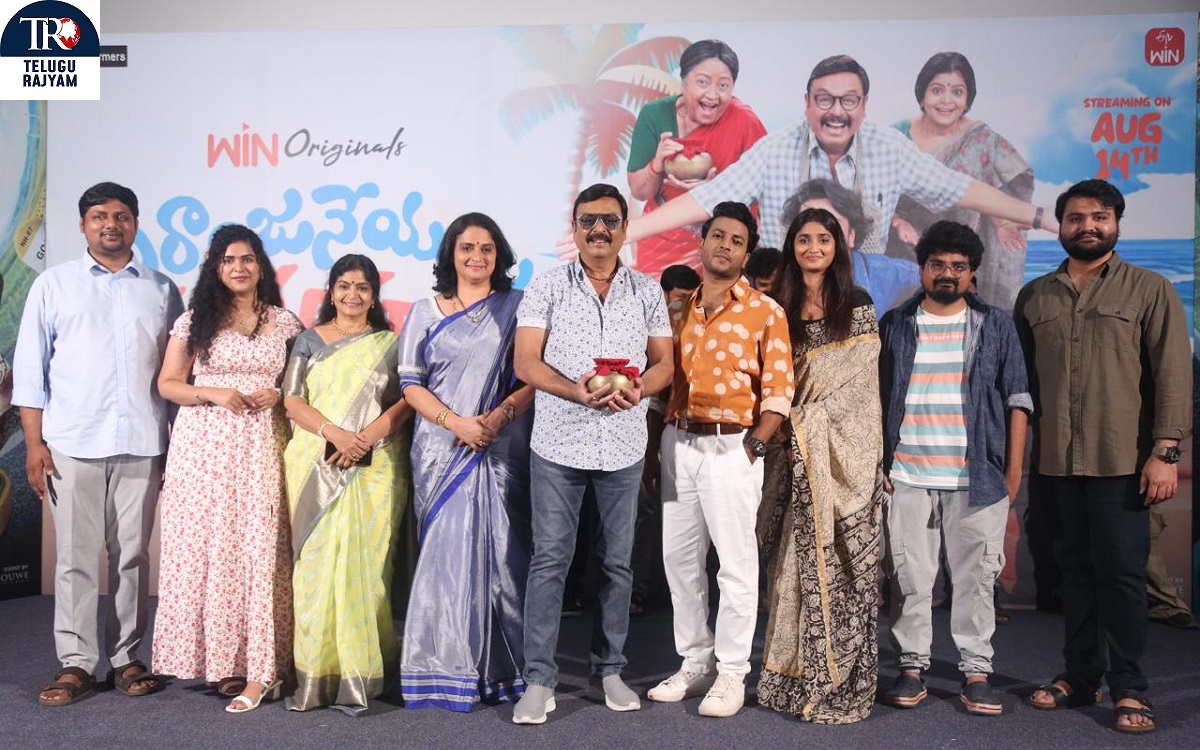 నవరసరాయ డా. నరేశ్ వికె, రాగ్ మయూర్, ప్రియా వడ్లమాని లీడ్ రోల్స్ నటిస్తున్న హిలేరియస్ ఫ్యామిలీ ఎంటర్ టైనర్ ‘వీరాంజనేయులు విహారయాత్ర’. అనురాగ్ పలుట్ల దర్శకత్వం వహించారు. బాపినీడు.బి, సుధీర్ ఈదర సంయుక్తంగా నిర్మిస్తున్నారు. ఆగస్ట్ 14న ఈ సినిమా ఈటీవీ విన్ లో స్ట్రీం కాబోతోంది. ఈ నేపధ్యంలో మేకర్స్ టీజర్ రిలీజ్ చేశారు. యాక్ట్రెస్ పవిత్ర లోకేష్ టీజర్ ని లాంచ్ చేశారు. డైరెక్టర్ సందీప్ రాజ్, వినోద్, ప్రవీణ్ కంద్రేగుల, హీరో తిరువీర్ పాల్గొన్న టీజర్ లాంచ్ ఈవెంట్ గ్రాండ్ గా జరిగింది