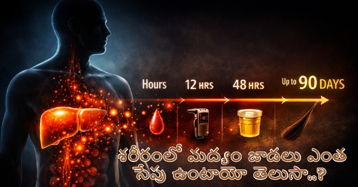 శ్వాసలో ఆల్కహాల్ జాడలు 12 నుంచి 24 గంటల వరకు గుర్తించవచ్చు. మూత్రంలో అయితే సాధారణంగా 12 నుంచి 48 గంటల వరకు ఆల్కహాల్ ఆనవాళ్లు ఉంటాయి. అధునాతన పరీక్షలలో ఇది 80 గంటల వరకు కూడా బయటపడుతుంది. లాలాజలంలో ఆల్కహాల్ 12 నుంచి 48 గంటల వరకు ఉంటుందని పరిశోధనలు చెబుతున్నాయి. ఇక్కడితో కథ ముగియదు.. అత్యంత ఆశ్చర్యకరమైన విషయం ఏంటంటే, ఆల్కహాల్ జాడలు మన వెంట్రుకల కుదుళ్లలో దాదాపు 90 రోజులు అంటే మూడు నెలల వరకు ఉండగలవట.
