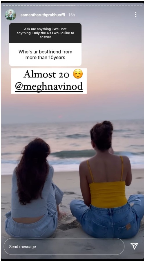 ఇక వివరాల్లోకి వెళితే సమంత తాజాగా పోస్ట్ చేసిన ఓ ఫొటోకు కొన్ని గంటల్లోనే లైక్ల వర్షం కురిసింది. అదేంటంటే ప్రస్తుతం హాలిడే ట్రిప్లో భాగంగా కేరళలో ఎంజాయ్ చేస్తున్న ఈ బ్యూటీ తన స్నేహితురాలితో బీచ్ ఒడ్డున దిగిన ఓ ఫొటోను షేర్ చేస్తూ.. ‘నువ్వు లేని జీవితాన్ని ఊహించుకోలేను’ అనే క్యాప్షన్ను జతచేసింది. దీంతో పాటు ‘బెస్ట్ ఫ్రెండ్స్’ అనే హాష్ ట్యాగ్ను కూడా జోడించింది. సామ్ పోస్ట్ చేసిన ఈ ఫోటో కొన్ని గంటల వ్యవధిలోనే కొన్ని లక్షల లైక్లను సొంతం చేసుకుని ప్రస్తుతం ట్రెండింగ్గా నిలిచింది.