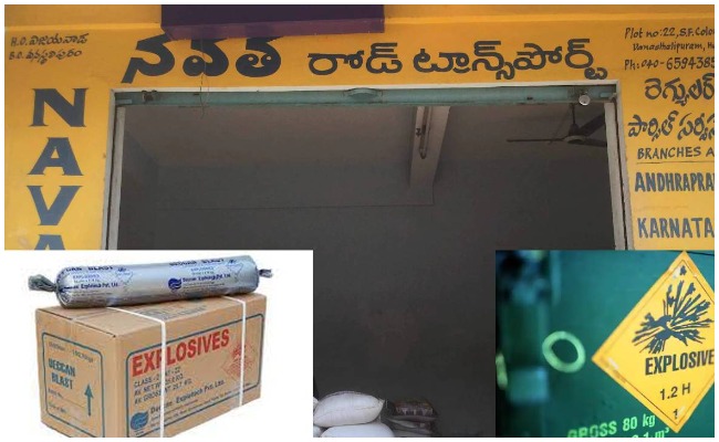 పోలీసులు తెలిపిన వివరాల ప్రకారం.. రాచకొండ కమిషనరేట్ పరిధిలోని వనస్థలిపురంలో ఉన్న నవత ట్రాన్స్పోర్ట్ లో సాధారణంగా చెక్ చేయగా కొన్ని బాక్స్ లు అనుమానాస్పదంగా కనిపించాయి. వెంటనే వాటిని తెరచి చూడగా అందులో పేర్లు పదార్థాలు ఉండటం తో ఒక్కసారిగా షాక్ కి గురయ్యారు.వెంటనే ఈ సమాచారాన్ని పోలీసులకు తెలియజేయగా పోలీసులు అక్కడికి చేరుకొని ఈ పేలుడు పదార్థాల గురించి విచారించారు.