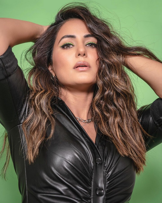 Hinakhan Awesome Looks in Shiny Black Outfit