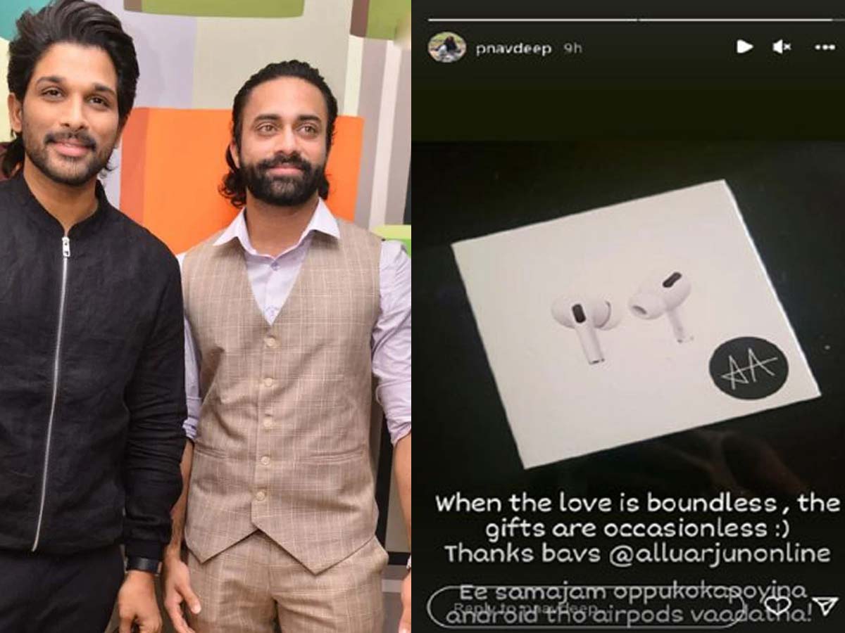 అల్లు అర్జున్ ఇచ్చిన గిఫ్ట్ చూసి మురిసిపోయిన నవదీప్ ఇంస్టాగ్రామ్ వేదికగా అల్లు అర్జున్ కి కృతజ్ఞతలు తెలియజేశారు. ఇటీవల అల్లు అర్జున్ ఎయిర్పోడ్స్ ని నవదీప్ కి గిఫ్ట్ గా ఇచ్చాడు. దీంతో నవదీప్ ఆ ఎయిర్పోడ్స్ ని ఇన్స్టా స్టోరీలో పోస్ట్ చేసి