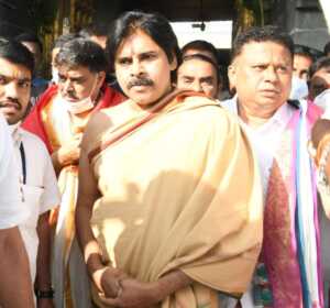 శుక్రవారం ఉదయం వీఐపీ ప్రారంభ దర్శన సమయంలో పార్టీ రాజకీయ వ్యవహారాల కమిటీ ఛైర్మన్ నాదెండ్ల మనోహర్తో కలిసి శ్రీవారి సేవలో పాల్గొన్నారు. ఆలయానికి చేరుకున్న జనసేనానికి టీటీడీ అధికారులు స్వాగతం పలికి దర్శన ఏర్పాట్లు చేశారు. అనంతరం రంగనాయకుల మండపంలో పండితులు వేదాశీర్వచనం పలికి శేష వస్త్రంతో సత్కరించారు.. స్వామివారి తీర్థప్రసాదాలు అందజేశారు.