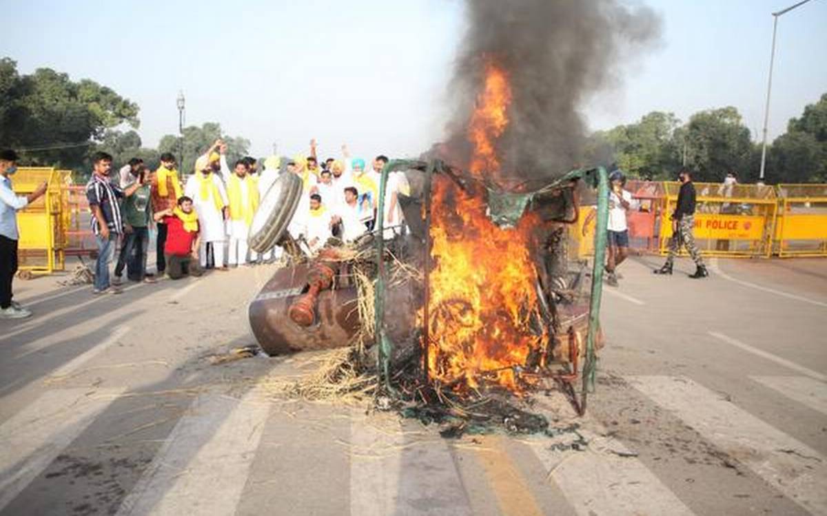 కేంద్ర ప్రభుత్వం కొత్తగా తీసుకొచ్చిన వ్యవసాయ బిల్లులకు వ్యతిరేకంగా దేశ వ్యాప్తంగా రైతులు ఆందోళనలు చేపడుతున్నారు.. ఇది వరకే ఆలిండియా రైతు సంఘాల పిలుపు మేరకు శుక్రవారం భారత్ బంద్ చేపట్టిన విషయం తెలిసిందే.. కాగా ఈ బంద్ కు కాంగ్రెస్, ఆప్, డీఎంకే, తృణమూల్ కాంగ్రెస్, రాష్ట్రీయ జనతాదళ్ సహా 18 ప్రతిపక్ష పార్టీలు మద్దతు తెలిపాయి. ఇక ఈ వ్యవసాయ బిల్లుల ద్వారా రైతులను దోపిడీ చేయడానికి కేంద్రం ప్రయత్నిస్తోందని వీరు ఆరోపిస్తున్నారు.. ఇప్పటికే దాదాపుగా అన్ని రాష్ట్రాల్లో ఈ వ్యవసాయ చట్టాలపై నిరసనలు భగ్గుమంటున్నాయి.. అంతే కాకుండా పంజాబ్, హర్యానాతో పాటు ఢిల్లీలో ఆందోళనలు హింసాత్మక రూపం దాల్చగా, దేశ రాజధాని ఢిల్లీలోని ఇండియా గేట్ వద్ద విపక్షాల ఆధ్వర్యంలో ఈరోజు ఉదయం పెద్ద ఎత్తున రైతులు చేపట్టిన నిరసనలో భాగంగా ఆందోళన కారులు రెచ్చిపోయి ఓ ట్రాక్టర్కు నిప్పు పెట్టారు. దీంతో ఇక్కడి పరిస్థితి ఉద్రిక్తంగా మారింది. వెంటనే అప్రమత్తమైన పోలీసులు రంగంలోకి దిగి మంటలను ఆర్పి, పరిస్థితిని అదుపులోకి తీసుకొచ్చారు..