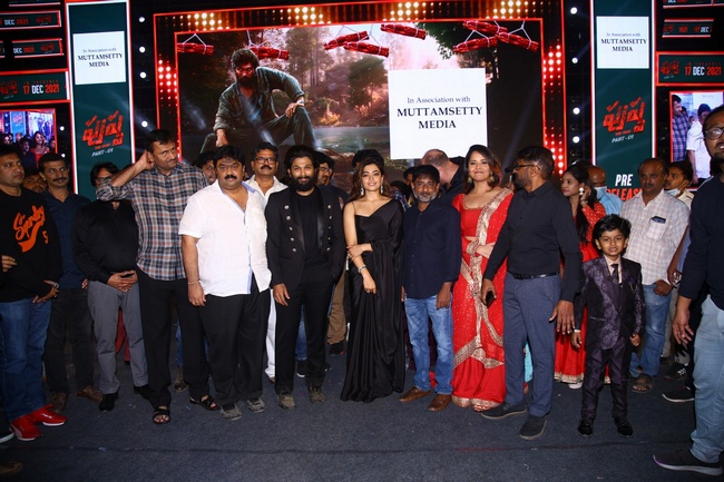 Pushpa Movie,Pushpa Movie photos,Pushpa Movie stills,Pushpa Movie images,Pushpa Movie stills,Pushpa Movie pre release event,tollywood,rashmika,allu arjun,allu aravind,raja mouli,anasuya,sunil