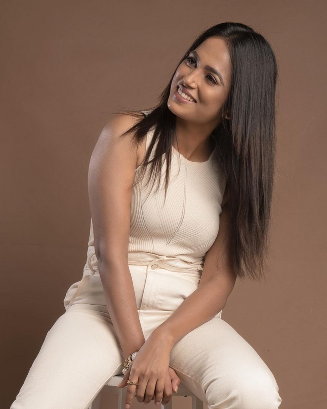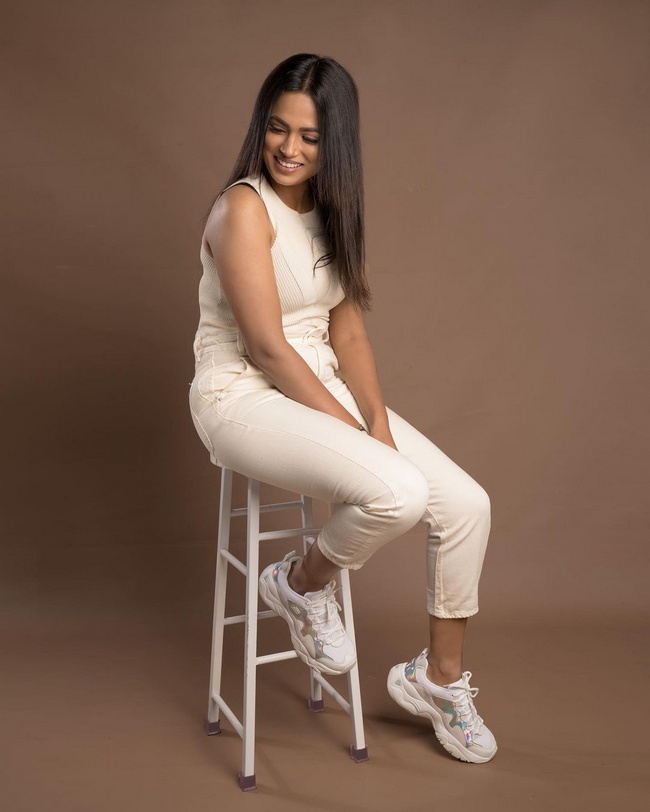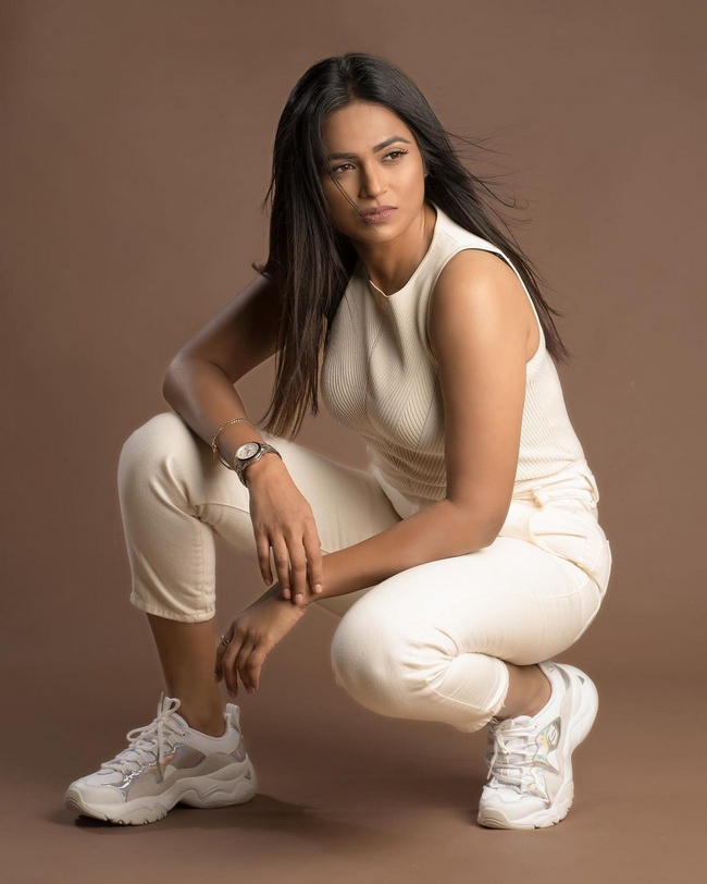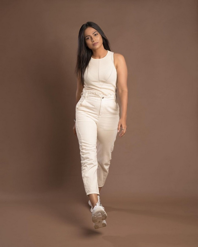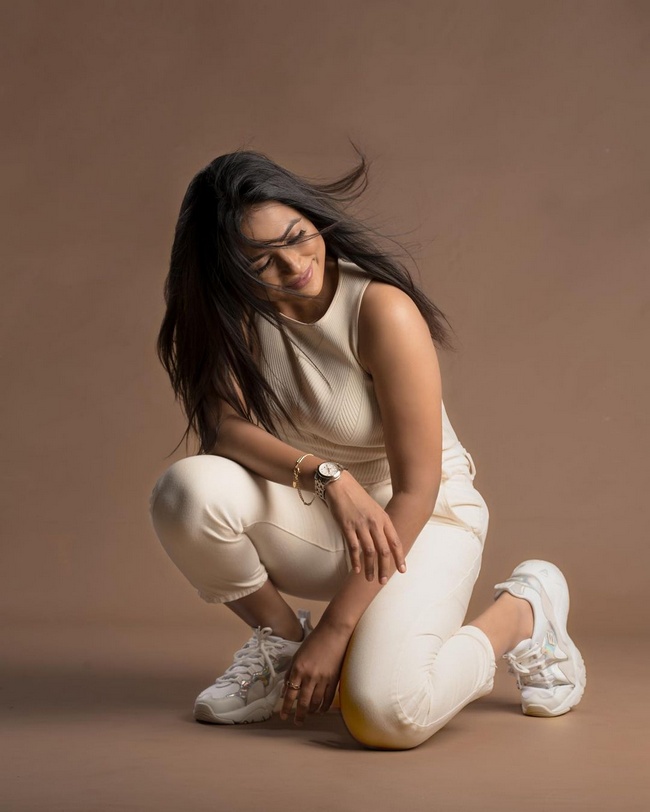 Ramya Pandian Beautiful Pics in White Dress