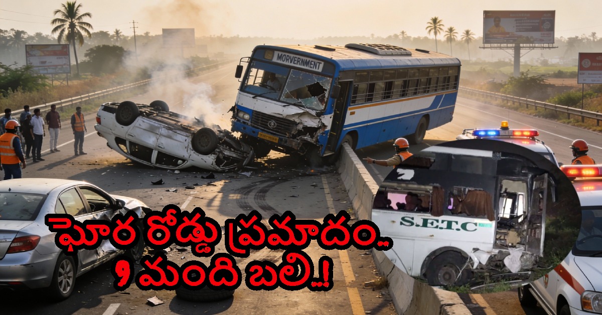 ఆ సమయంలో ఎదురుగా వస్తున్న రెండు కార్లను బస్సు తీవ్ర వేగంతో ఢీకొట్టింది. ఈ ప్రమాదంలో కార్లలో ప్రయాణిస్తున్న తొమ్మిది మంది అక్కడికక్కడే ప్రాణాలు కోల్పోయారు. ప్రమాద తీవ్రతకు కార్లు నుజ్జునుజ్జు అయ్యాయి. కొందరు కార్లలోనే చిక్కుకుపోవడంతో సహాయక చర్యలు మరింత కష్టంగా మారాయి.