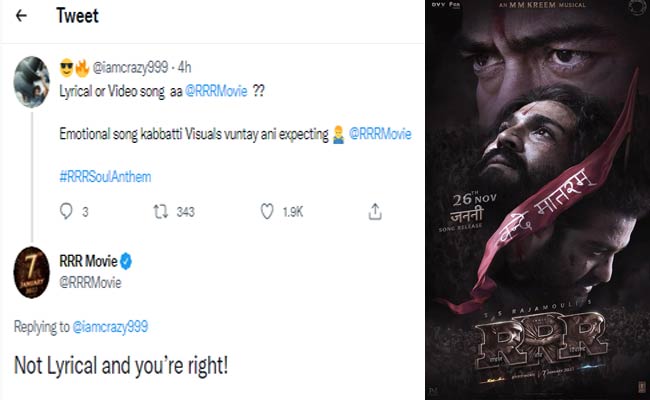 మరి ఇదిలా ఉండగా ఈ వచ్చే 26న ఈ చిత్రం నుంచి ఒక అద్భుతమైన పాటను రిలీజ్ చేస్తున్నట్టుగా చిత్ర యూనిట్, దర్శకుడు రాజమౌళి నిన్న కన్ఫర్మ్ చేశారు. అయితే అసలు ఈ సాంగ్ ఎలా ఉండబోతుందో అనేది RRR బృందం ఓ క్లారిటీ ఇచ్చారు. ఈ సాంగ్ అయితే మిగతా పాటల్లా లిరికల్ గా ఉందట కంప్లీట్ భావోద్వేగ పూరిత పాట కాబట్టి విజువల్స్ తోనే ఉంటుందట.