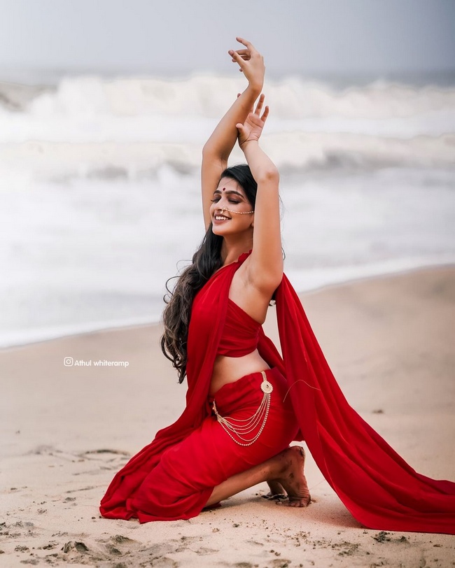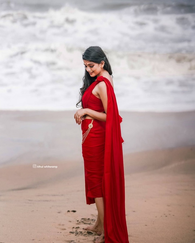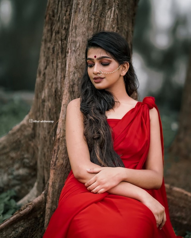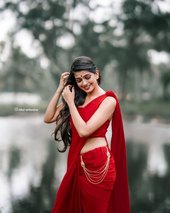 𝗔𝗻𝗮𝗻𝘁𝗵𝗶𝗸𝗮 Hot looks In a Red Saree