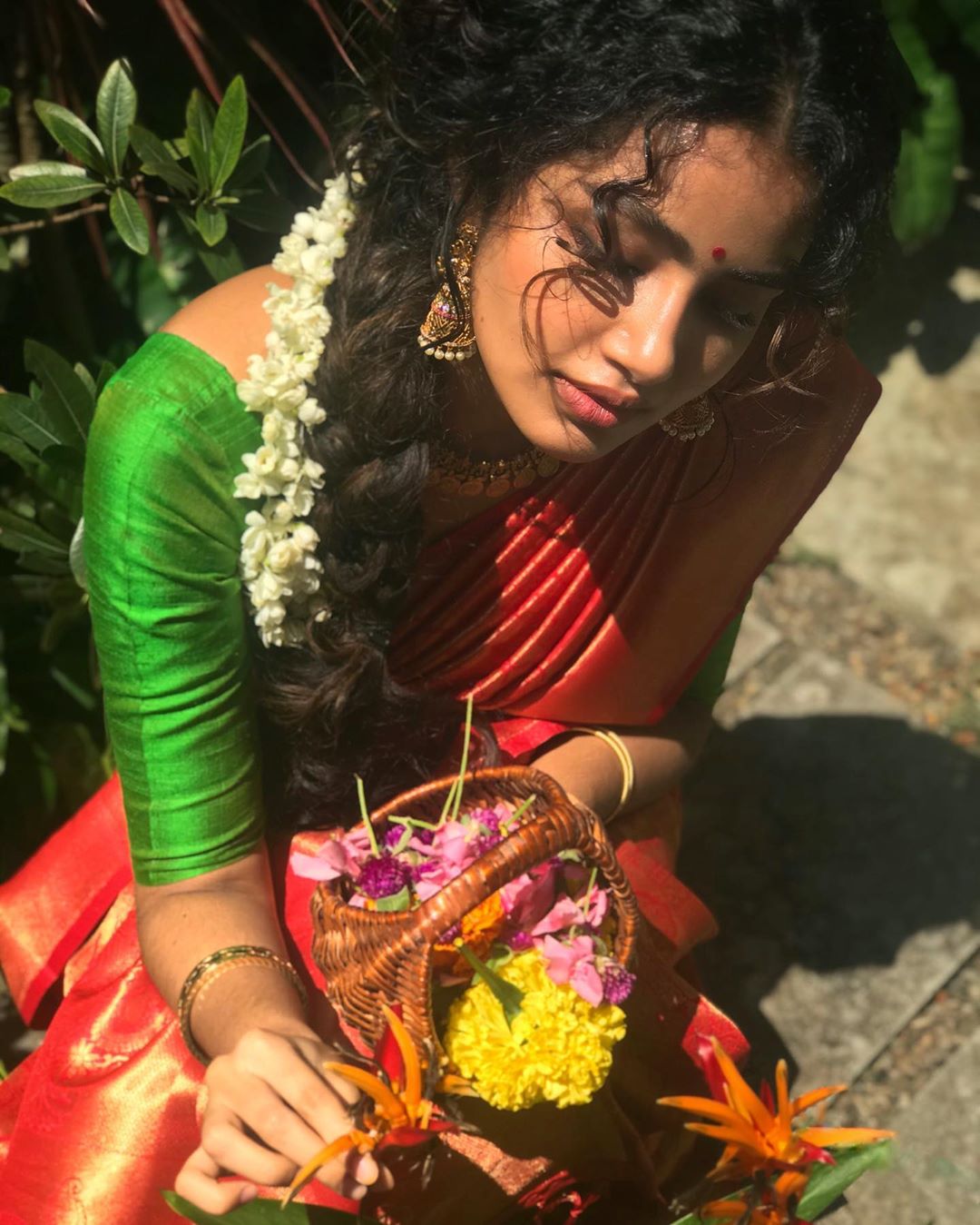 Anupama Parameswaran celebrating Onam , Anupama Parameswaran New Stills , Anupama Parameswaran Gallery , Anupama Parameswaran Latest Photos , Anupama Parameswaran , Anupama Parameswaran Red Saree Stills , Telugu Actress Anupama Parameswaran , Latest Photos in Telugu rajyam