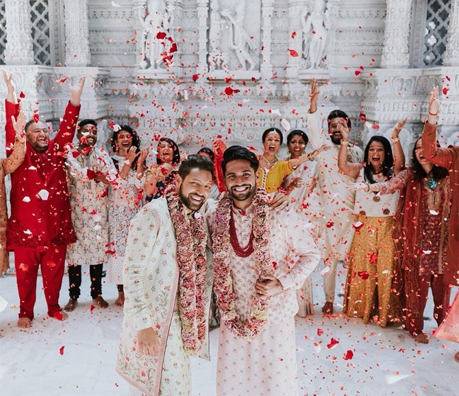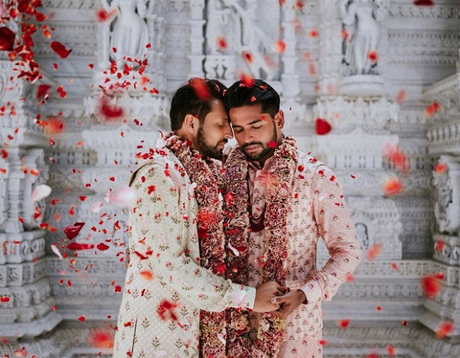 వీరిద్దరి వెడ్డింగ్ అమెరికా నగరంలోని న్యూ జెర్సీలో అత్యంత స్టైలిష్గా సంప్రదాయ పద్దతిలో జరగడంతో అంతా ఆశ్చర్యంతో నోరెళ్లబెడుతున్నారు. ఈ పెళ్లి కోసం ఇద్దరు ప్రత్యేకంగా కుర్తాలని డిజైన్ చేయించుకోవడం ప్రత్యేక ఆకర్షణగా నిలిచింది. వీరిద్దరి ఉదంతంతో ప్రేమ చాలా పవర్ఫుల్ అని దాన్ని అడ్డగోడలుగా కులం, మతం, ఆడ, మగా నిలబడలేదని స్పష్టమైంది. అచ్చుం నూతన వధూవురులు ఫొటోలకు పోజులు ఇచ్చినట్టుగానే ఈ ఇద్దరూ ఫొటోలకు నోజులు ఇవ్వడం వీరి పెళ్లిని ఇరు కుటుంబాల పెద్దలు ఈజీగానే యాక్సెప్ట్ చేయడం పలువురిని ఆశ్చర్యానికి గురిచేస్తోంది. ఇక్కడ ఇంకో విషయం ప్రత్యేకంగా చెప్పాలి. నూతన వధూవరులు పెళ్లికి ముందు మెహందీ ఫంక్షన్ని చేసుకుంటారు. ఇదే తరహాలో అమిత్ షా, ఆదిత్య మాదిరాజు ల మెహందీ ఫంక్షన్ జరగడం ఏడో వింతగా చెప్పుకోవచ్చు. వింత సంప్రదాయానికి తెరలేపిన అమిత్ షా, ఆదిత్య మాదిరాజు ల వివాహం సోషల్ మీడియాలో సంచలనం సృష్టిస్తోంది.